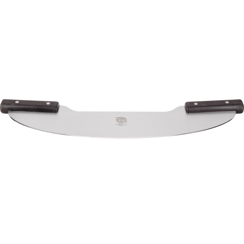 Use this American Metalcraft 20" pizza knife to slice up your pizza pie, or to cut and dice vegetables and fruit. The rocking feature allows you to maintain a steady, rhythmic momentum. The palm handles offer safety and security by keeping your fingers out of the way while working with the knife. With a precision sharp, straight-edge blade, this tool will be perfect for whatever task for which you may need it.